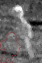 After doing a couple of trial runs, I was relatively pleased with the results, considering the fact that the scanned image was from a photograph approximately 70 years old. As I looked through several of the cutouts I had made, I thought maybe I saw something…something else. The entity’s right lower arm/hand region seemed to be obscured; but by what? So I went back to the original scan, and starting working on that particular area. What I finally saw, or thought I saw was a second, even smaller entity. Is it possible that we had a female with her child? I had done what I could, and the results were inconclusive.