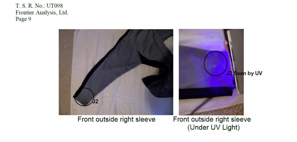 There are two objectives of this analysis. The first is to identify any stains and spots left on various pieces of clothing for anomalies which may be related to the abduction. The second is to compare these results to two analyses, one done on the dress Betty Hill wore during her abduction and the other done on an experiencer’s tee shirt worn during an abduction in Winnipeg, Canada.