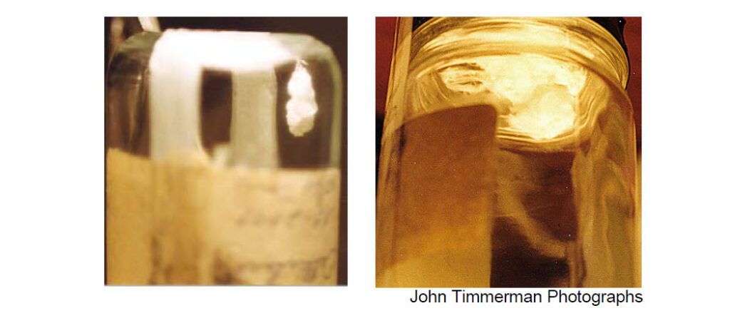 This handwriting matches that from two other samples. And the information indicates all three samples were obtained at the same time (October 19–20, 1977) and location (Los Gatos, California). Two samples were very tightly sealed in glass jars and other was in an envelope. For many years this analyst has read tales of mysterious “angel hair” falls all over the globe and its purported unusual properties such as an ability to turn gelatinous and vanish (though not universally reported). John’s discovery of these samples provided my first opportunity for analysis of this material.