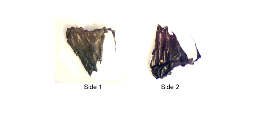 The object of this analysis is to determine whether this substance is an alien implant. Microscope photographs of both sides of the object follow.