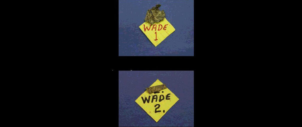 - It can be speculated that the source of Wade 1, 3, 4, 5, 7 and 8, with thicknesses of 1-2 mils (0.02-0.05 mm) are aluminum foil, which has a thickness of 1 mil (0.02 mm). The remaining samples, Wade 2, 12, 21 and 6 are thicker and clearly cannot be related to aluminum foil. Their source remains unknown.