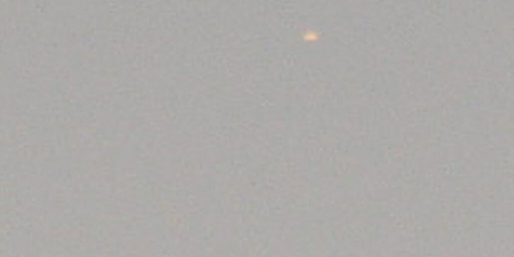 The first photo was made without using the camera zoom, showing the first visible object near the moon. (Faint white object seen to the left of the moon at the 10 o’clock position).