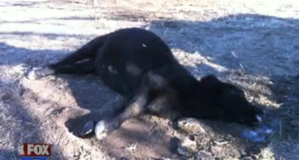 The cow’s owner, Casey Hamilton, told police that the cow had been ill, and had been moved to another pasture away from the rest of his herd. According to the police report, the cow was alive and recovering when it was last checked on Wednesday night, but was found dead the following morning.