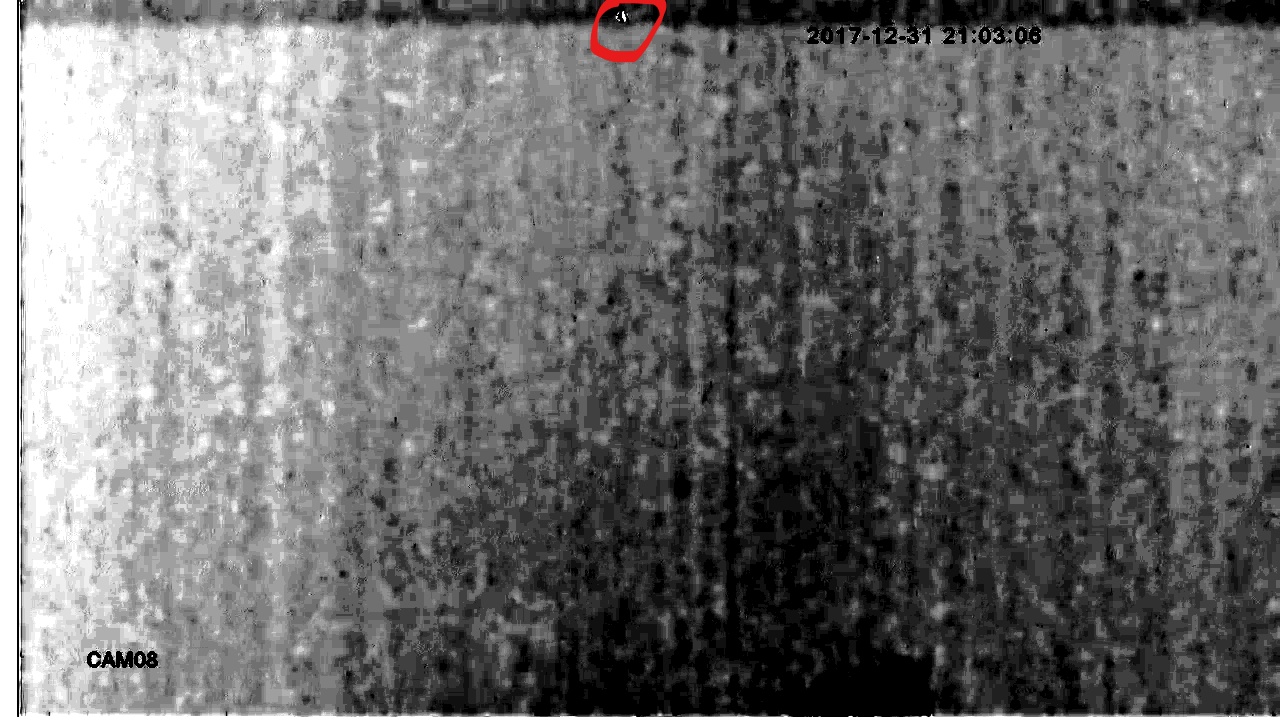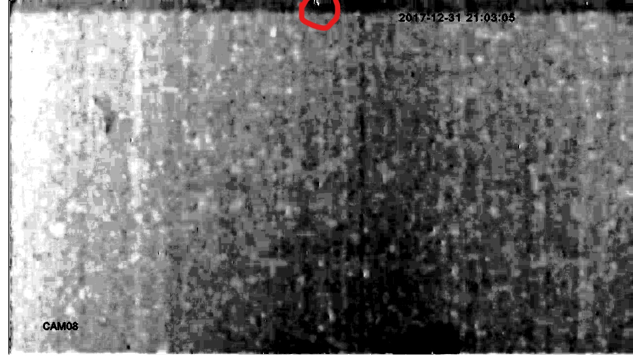 Preliminary conclusion is that this is a water droplet, or snowflake, as it does appear to be snowing, which is passing over the lens of the camera.