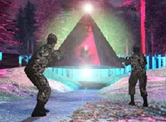 “I did a picture search for the first time and came up with these two pictures that closely resemble what I saw. Now, you have to imagine them up against a black sky, 75-100 ft in front and above you. You wouldn’t see any structure. Just the lights giving you an idea of the shape which I call pyramid as opposed to triangle.”