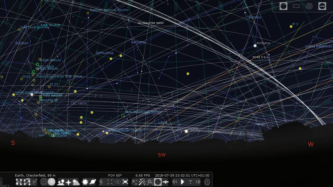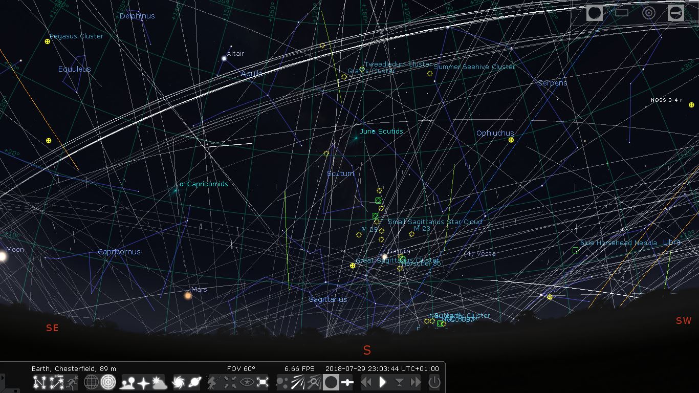 Stellarium was used for the night sky around the Chesterfield area on 07/29/2018 11:00 PM
