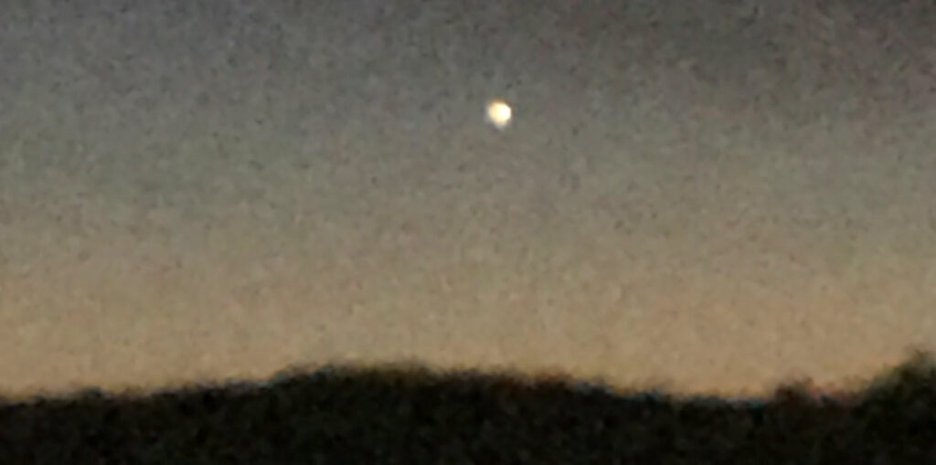 Upon doing a search of the area, I found only one airport in the area, at Elliot Lake four miles away to the southeast. The operating hours are unknown. After some analysis via Google maps, it can be asserted that the object was most likely less than 2 miles from the witness. This distance is calculated based on the topography, and clarity of the photo. The object would have to have been in front of the Mount Dufour ski area, about one mile away. The first unzoomed image above does appear to have an ambiguous geometry to it, and a glow that seems to encompass the entire object.