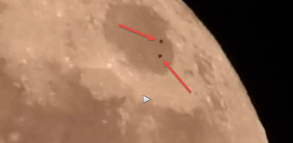 The following video was posted to LiveLeak, but a person just taking a video of the “Super Moon.” In the process of doing so, they captured either two objects, or one, casting a shadow on the lunar surface.