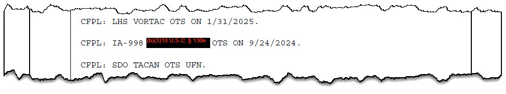 However, the only visible redaction within the released Daily Record of Facility Operation appears minimal and tied to an earlier log entry unrelated to the PWA192 incident, referencing navigational aid outages and coded facility status notes. The section documenting the unidentified aircraft encounter at approximately 0210 UTC remains largely intact and unredacted, suggesting the withheld DoD-related information does not directly pertain to the unidentified object.