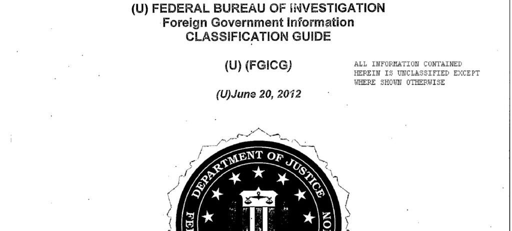 Federal Bureau of Investigation (FBI) Foreign Government Information Classification Guide, June 20, 2012 [66 Pages, 2.9MB]