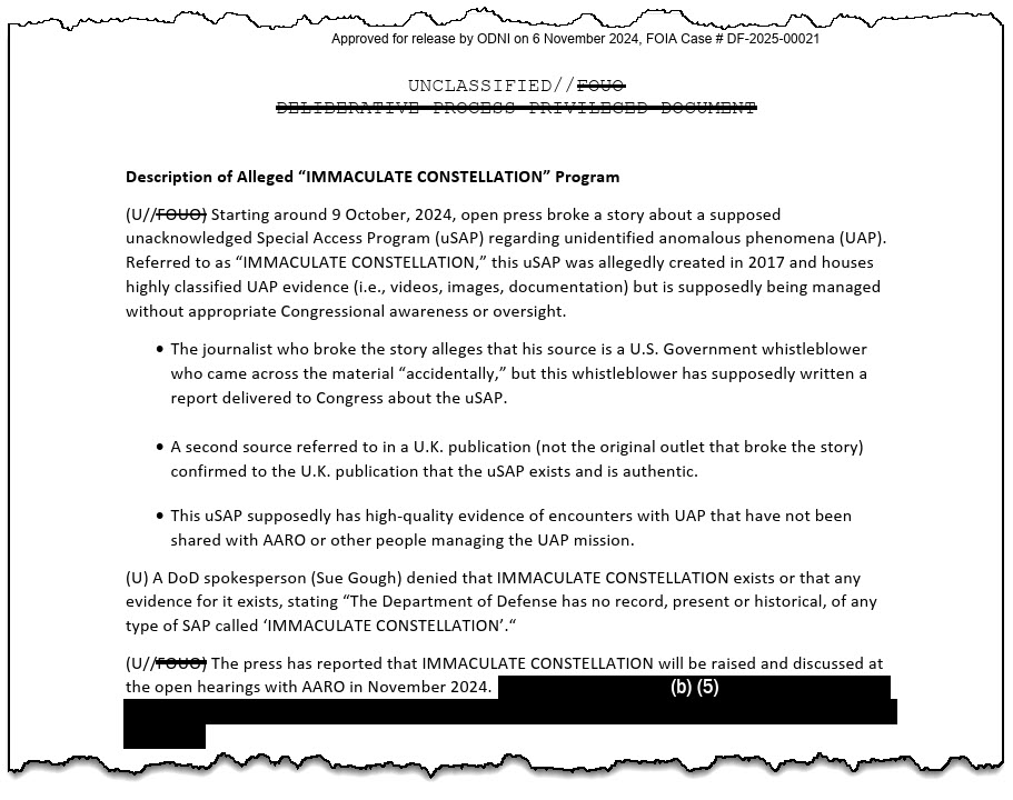 Journalist Michael Shellenberger, who testified at the UAP hearing in November 2024, also submitted extensive testimony about Immaculate Constellation and the UAP topic in general.