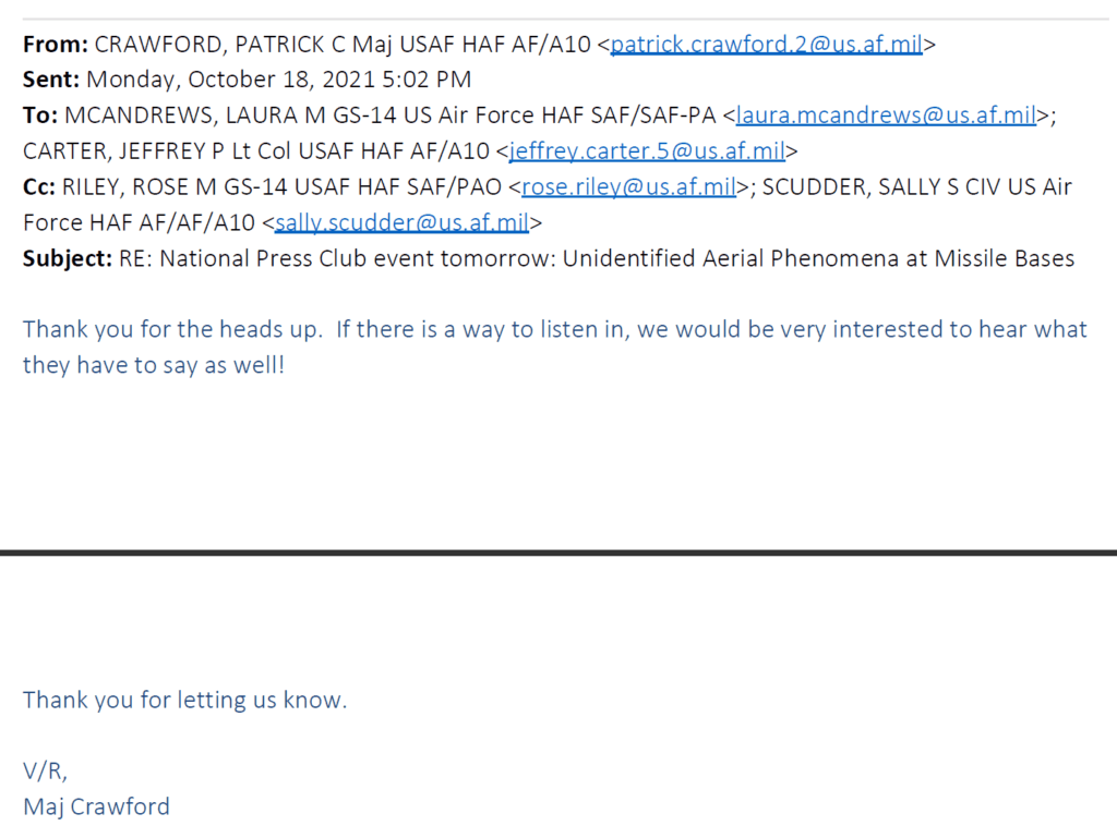 In addition to the short back and forth between the Air Force and Robert Salas, also included were internal communications.