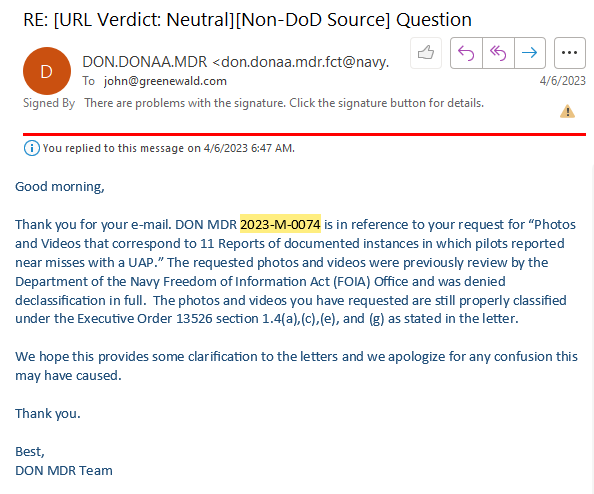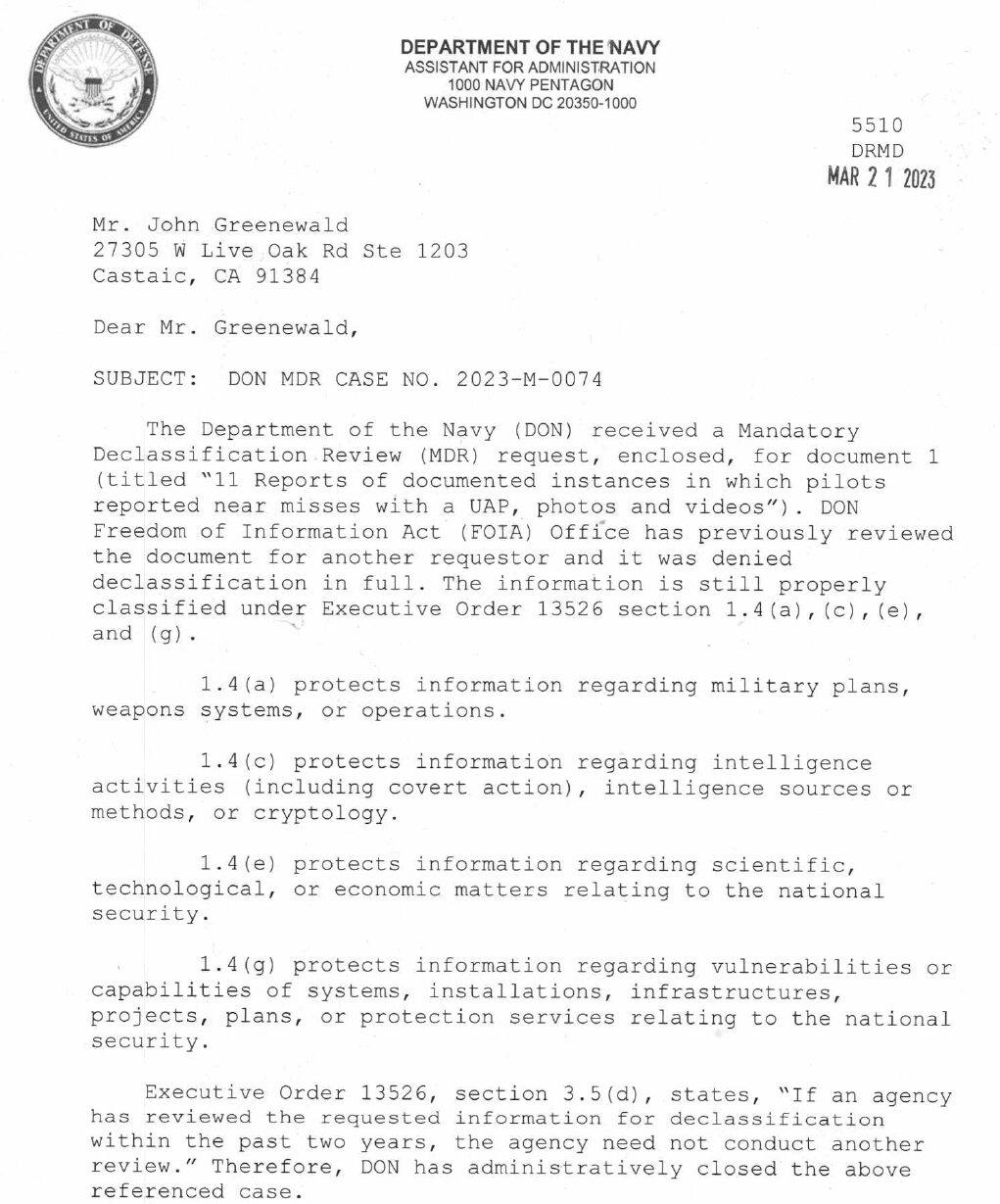 So, the MDR was denied based on that review. It is unclear if all 11 had imagery, or just 1. Regardless, these would definitely provide a close-up look at the encounters, if they are ever released.