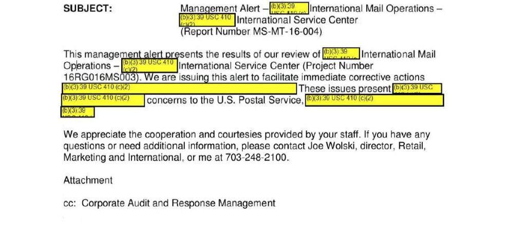 ![USPS Investigation: Management Alert – Inbound International Mail Operations – [Redacted] International Service Center, September 28, 2016](https://www.theblackvault.com/documentarchive/wp-content/uploads/2016/11/2016-11-16_6-55-20-1024x448.jpg)